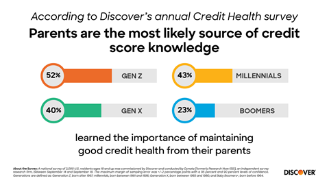 Parents are the most likely source of credit score knowledge, according to Discover’s annual Credit Health survey